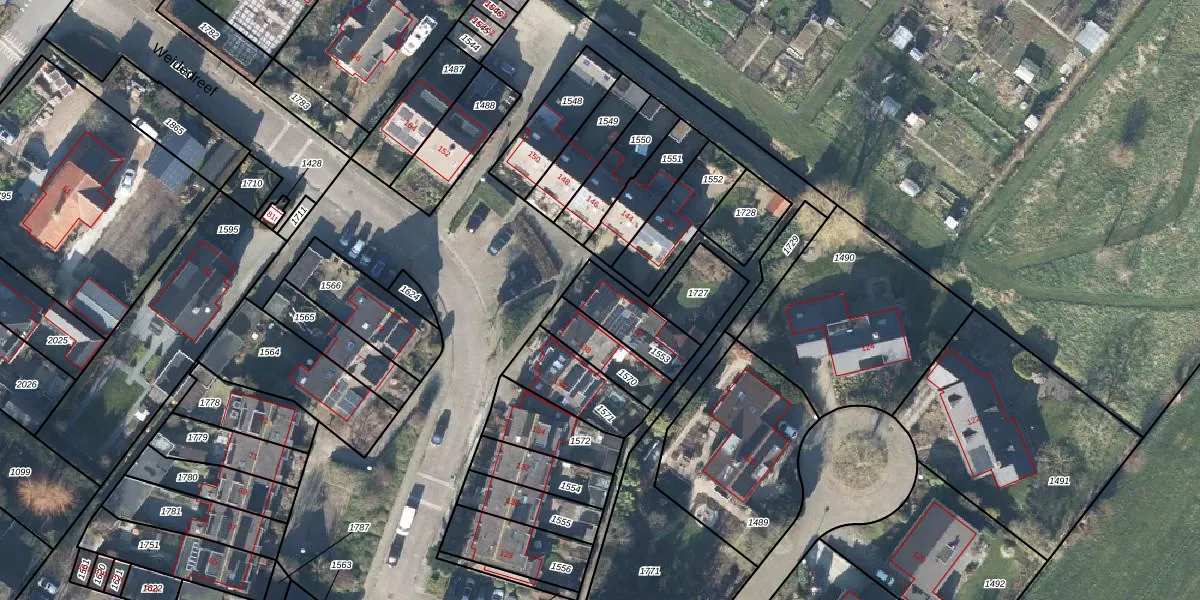 Gebruik de zoekbalk of klik op een perceel voor informatie over de adressen binnen dit perceel.