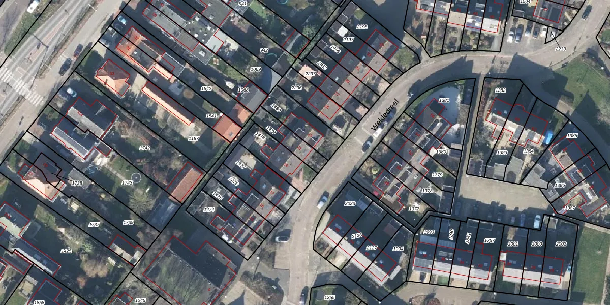 Weidedreef 21 is gelegen op kadastraal perceel LBK02A1479. Deze kadastrale aanduiding is uniek en wordt gebruikt door het Kadaster om eigendomsrechten en andere zakelijke rechten vast te leggen. Het perceel maakt onderdeel uit van de kadastrale gemeente Langbroek.