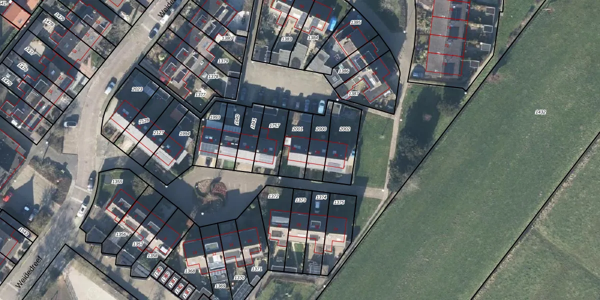 Weidedreef 30 is gelegen op kadastraal perceel LBK02A2001. Deze kadastrale aanduiding is uniek en wordt gebruikt door het Kadaster om eigendomsrechten en andere zakelijke rechten vast te leggen. Het perceel maakt onderdeel uit van de kadastrale gemeente Langbroek.