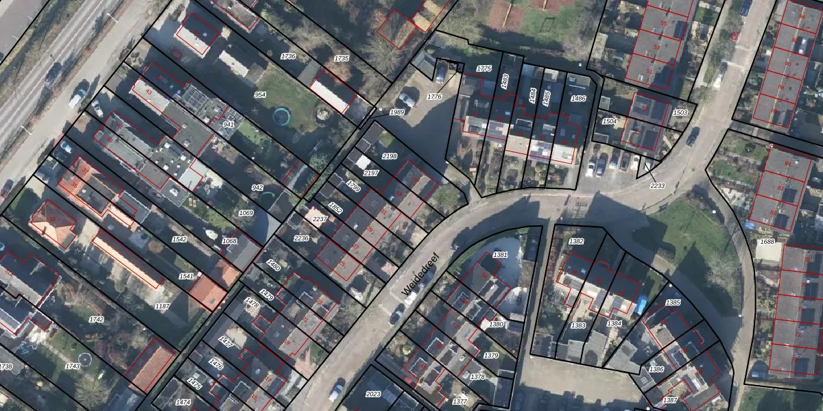 Weidedreef 33 is gelegen op kadastraal perceel LBK02A2197. Deze kadastrale aanduiding is uniek en wordt gebruikt door het Kadaster om eigendomsrechten en andere zakelijke rechten vast te leggen. Het perceel maakt onderdeel uit van de kadastrale gemeente Langbroek.