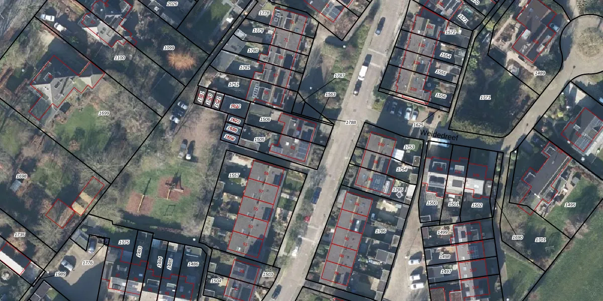 Weidedreef 61 is gelegen op kadastraal perceel LBK02A1505. Deze kadastrale aanduiding is uniek en wordt gebruikt door het Kadaster om eigendomsrechten en andere zakelijke rechten vast te leggen. Het perceel maakt onderdeel uit van de kadastrale gemeente Langbroek.