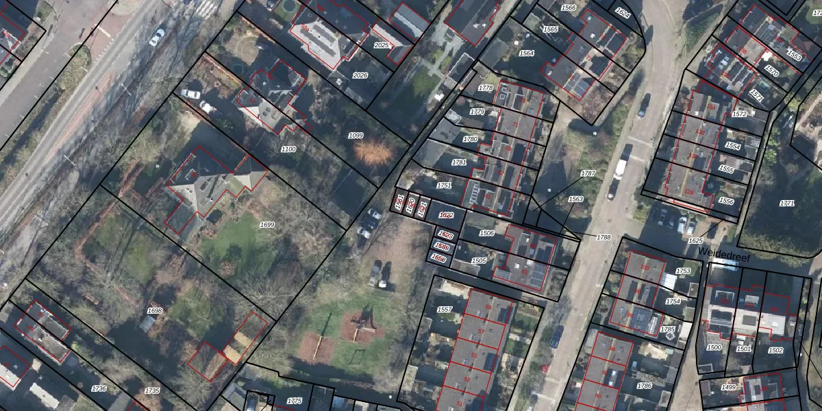 Weidedreef 61-g is gelegen op kadastraal perceel LBK02A1620. Deze kadastrale aanduiding is uniek en wordt gebruikt door het Kadaster om eigendomsrechten en andere zakelijke rechten vast te leggen. Het perceel maakt onderdeel uit van de kadastrale gemeente Langbroek.