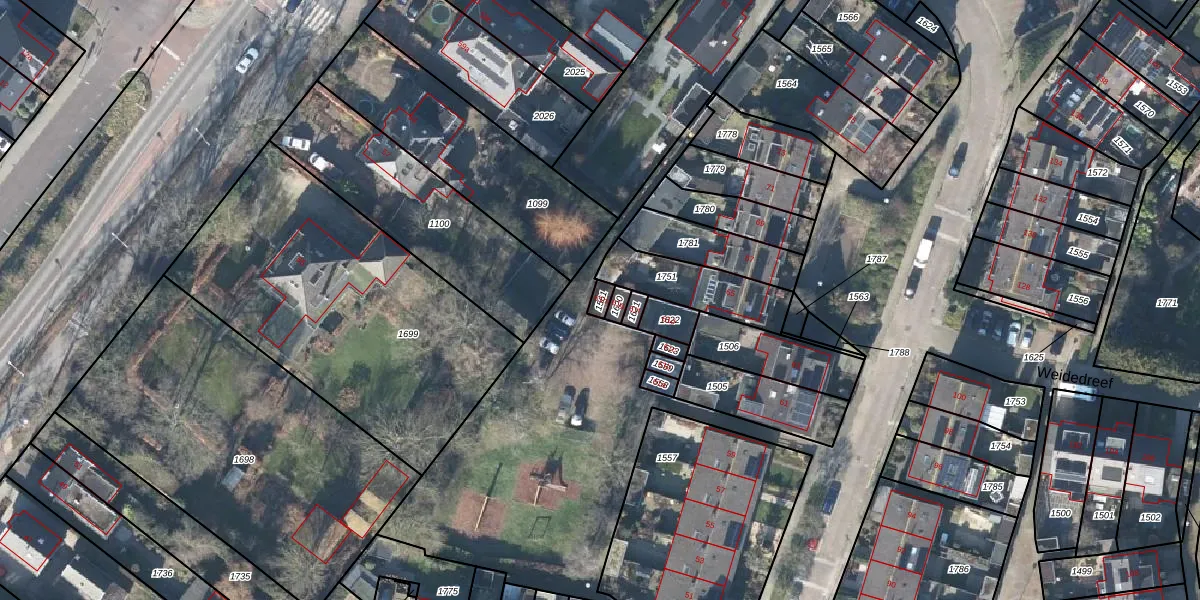 Weidedreef 61-h is gelegen op kadastraal perceel LBK02A1561. Deze kadastrale aanduiding is uniek en wordt gebruikt door het Kadaster om eigendomsrechten en andere zakelijke rechten vast te leggen. Het perceel maakt onderdeel uit van de kadastrale gemeente Langbroek.
