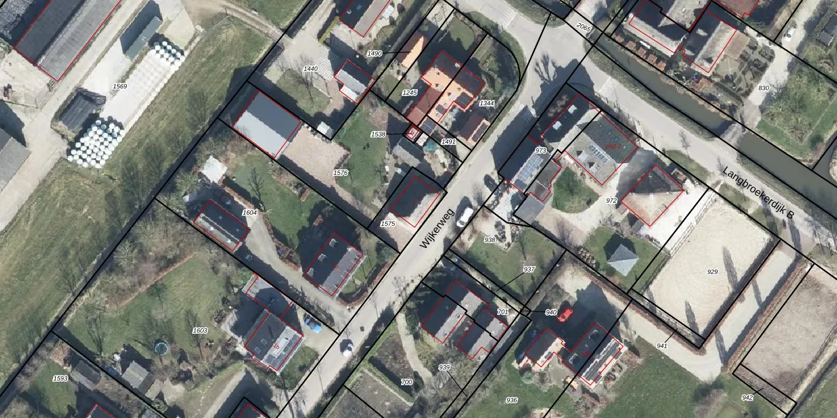 Wijkerweg 1 is gelegen op kadastraal perceel LBK02B1575. Deze kadastrale aanduiding is uniek en wordt gebruikt door het Kadaster om eigendomsrechten en andere zakelijke rechten vast te leggen. Het perceel maakt onderdeel uit van de kadastrale gemeente Langbroek.