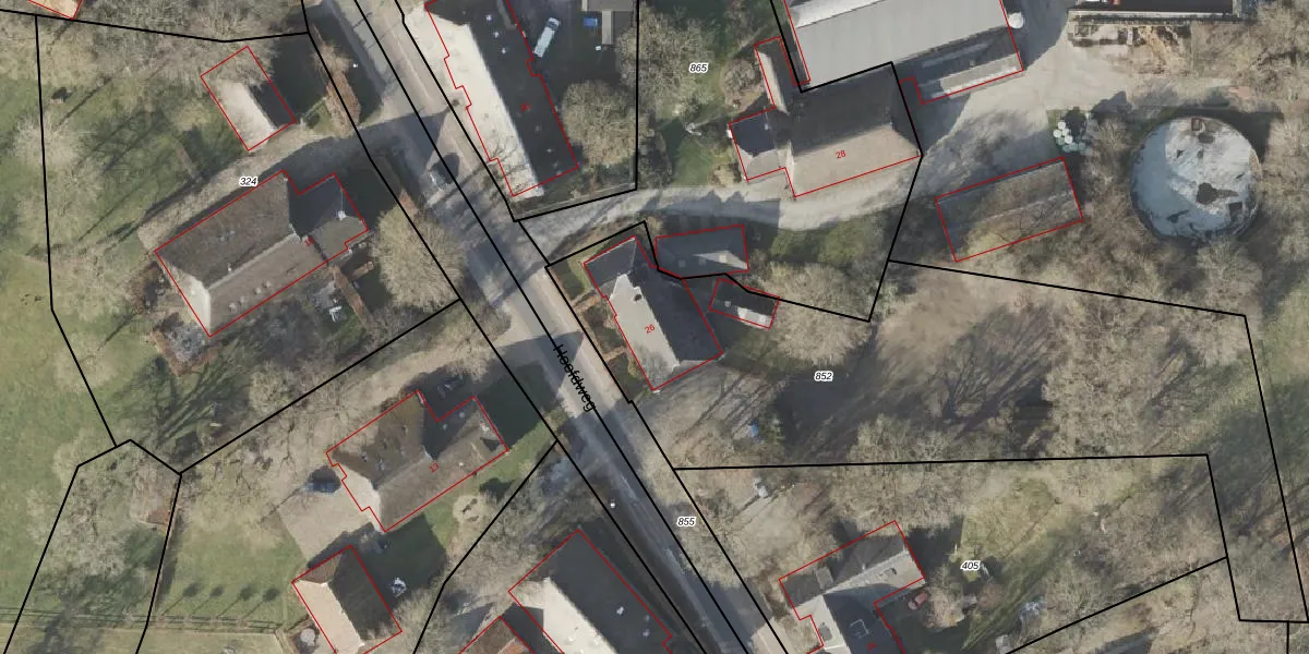 Het perceel waarop Hoofdweg 26 staat heeft een oppervlakte van 2950 m². Dit is een zeer groot perceel. De perceeloppervlakte wordt geregistreerd door het Kadaster. Gedetailleerde informatie over de maten van dit perceel kunt u vinden in het rapport Kadastrale kaart met maatvoering van Hoofdweg 26.