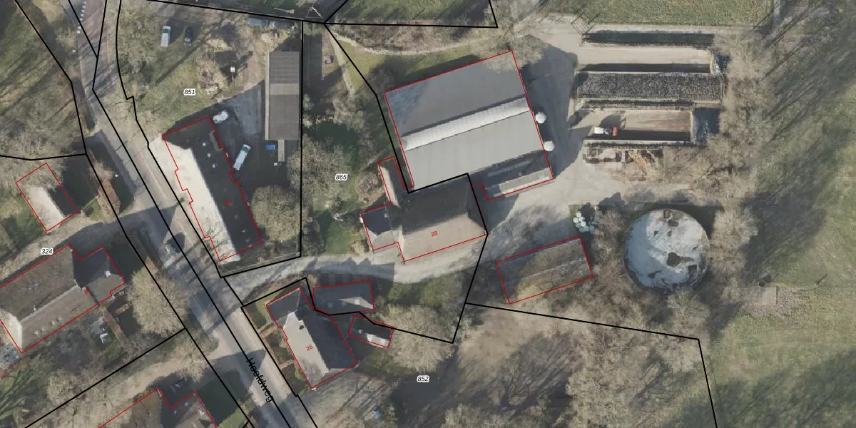 Het perceel waarop Hoofdweg 28 staat heeft een oppervlakte van 2050 m². Dit is een zeer groot perceel. De perceeloppervlakte wordt geregistreerd door het Kadaster. Gedetailleerde informatie over de maten van dit perceel kunt u vinden in het rapport Kadastrale kaart met maatvoering van Hoofdweg 28.
