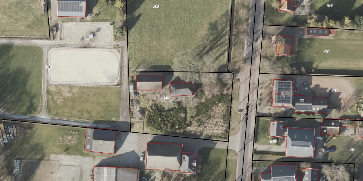 Het perceel waarop Hoofdweg 5 staat heeft een oppervlakte van 2010 m². Dit is een zeer groot perceel. De perceeloppervlakte wordt geregistreerd door het Kadaster. Gedetailleerde informatie over de maten van dit perceel kunt u vinden in het rapport Kadastrale kaart met maatvoering van Hoofdweg 5.