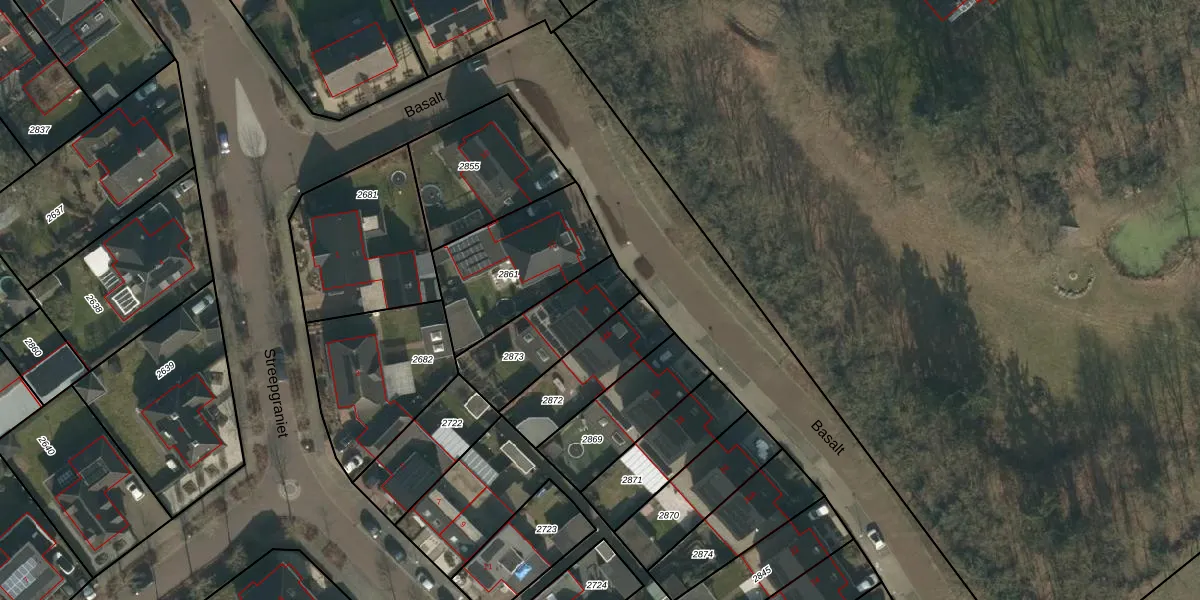 Het perceel waarop Basalt 14 staat heeft een oppervlakte van 307 m². Dit is een groot perceel. De perceeloppervlakte wordt geregistreerd door het Kadaster. Gedetailleerde informatie over de maten van dit perceel kunt u vinden in het rapport Kadastrale kaart met maatvoering van Basalt 14.