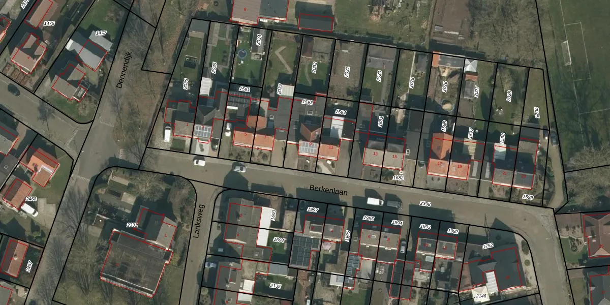 Berkenlaan 9 is gelegen op kadastraal perceel MIL00K1593. Deze kadastrale aanduiding is uniek en wordt gebruikt door het Kadaster om eigendomsrechten en andere zakelijke rechten vast te leggen. Het perceel maakt onderdeel uit van de kadastrale gemeente Mill.