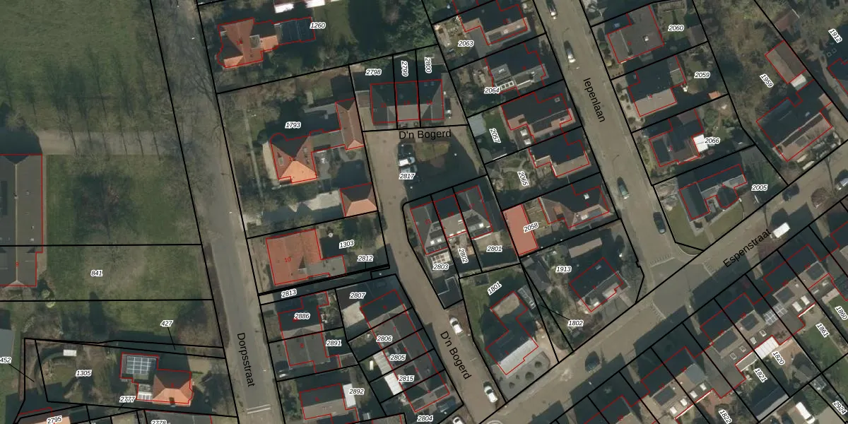 D'n Bogerd 21 is gelegen op kadastraal perceel MIL00K2803. Deze kadastrale aanduiding is uniek en wordt gebruikt door het Kadaster om eigendomsrechten en andere zakelijke rechten vast te leggen. Het perceel maakt onderdeel uit van de kadastrale gemeente Mill.