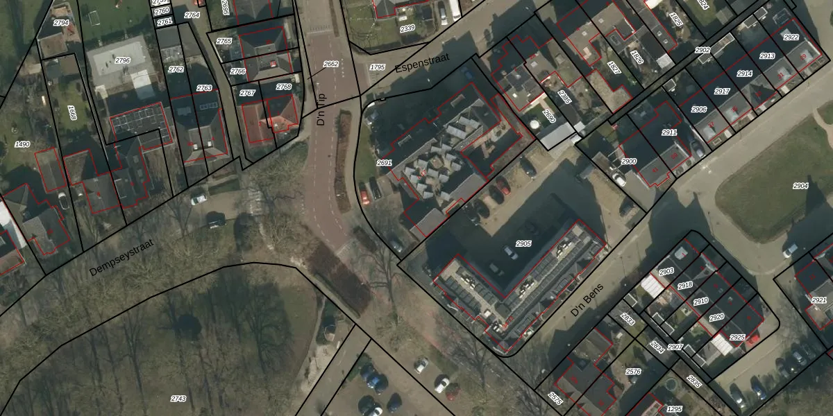 D'n Tip 12 is gelegen op kadastraal perceel MIL00K2691. Deze kadastrale aanduiding is uniek en wordt gebruikt door het Kadaster om eigendomsrechten en andere zakelijke rechten vast te leggen. Het perceel maakt onderdeel uit van de kadastrale gemeente Mill.