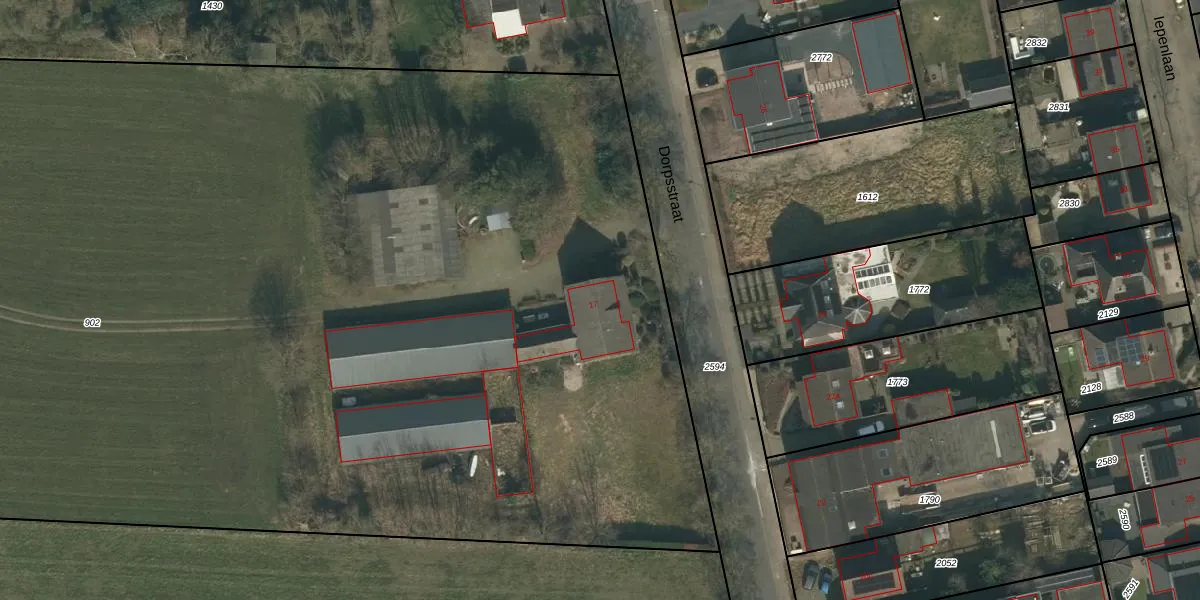 Het perceel waarop Dorpsstraat 17 staat heeft een oppervlakte van 1,2 ha. Dit is een zeer groot perceel. De perceeloppervlakte wordt geregistreerd door het Kadaster. Gedetailleerde informatie over de maten van dit perceel kunt u vinden in het rapport Kadastrale kaart met maatvoering van Dorpsstraat 17.