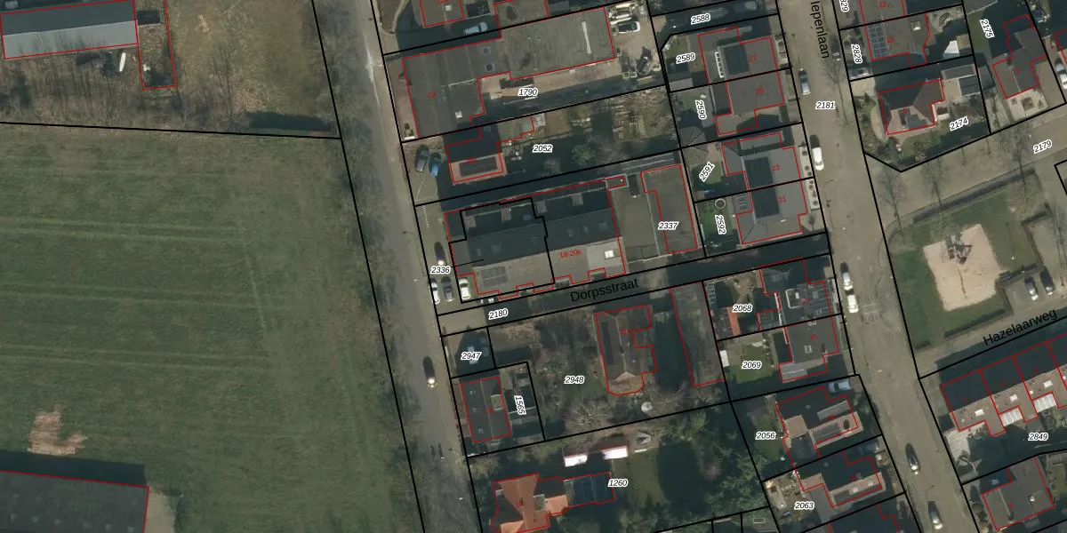 Dorpsstraat 18-b is gelegen op kadastraal perceel MIL00K2336. Deze kadastrale aanduiding is uniek en wordt gebruikt door het Kadaster om eigendomsrechten en andere zakelijke rechten vast te leggen. Het perceel maakt onderdeel uit van de kadastrale gemeente Mill.