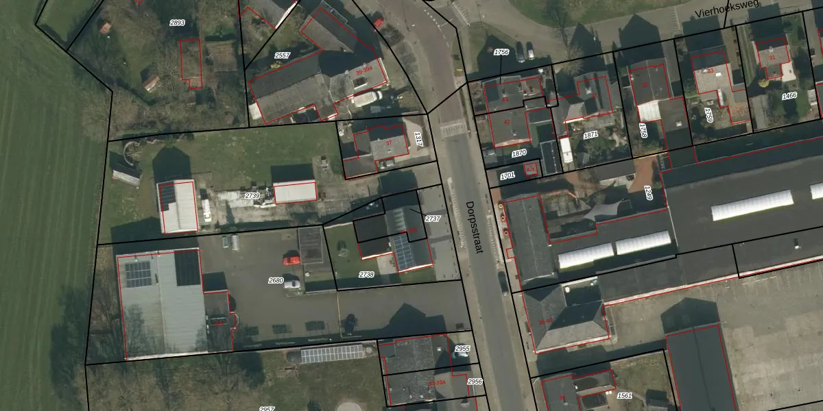Dorpsstraat 35-b is gelegen op kadastraal perceel MIL00K2737. Deze kadastrale aanduiding is uniek en wordt gebruikt door het Kadaster om eigendomsrechten en andere zakelijke rechten vast te leggen. Het perceel maakt onderdeel uit van de kadastrale gemeente Mill.