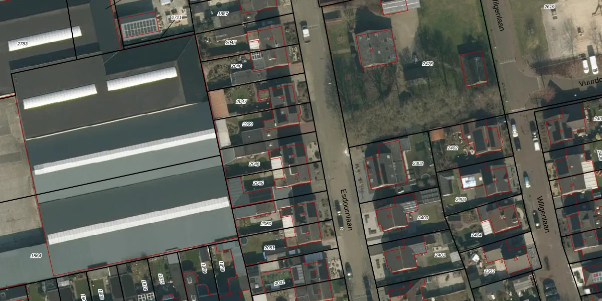 Esdoornlaan 25 is gelegen op kadastraal perceel MIL00K2048. Deze kadastrale aanduiding is uniek en wordt gebruikt door het Kadaster om eigendomsrechten en andere zakelijke rechten vast te leggen. Het perceel maakt onderdeel uit van de kadastrale gemeente Mill.