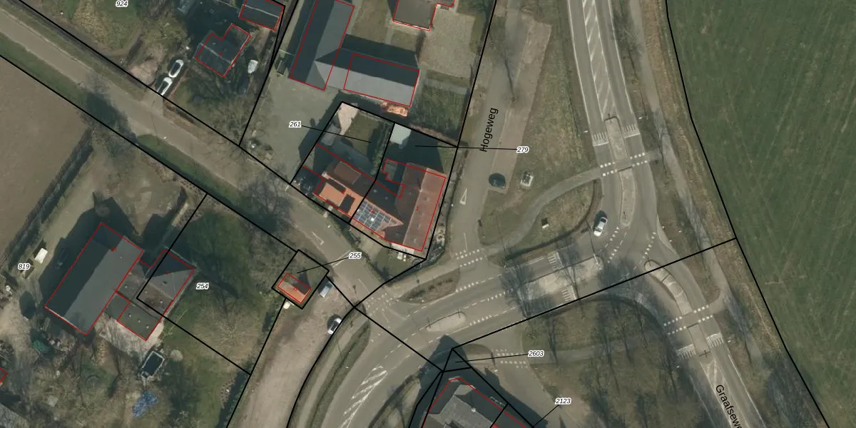 Hogeweg 1 is gelegen op kadastraal perceel MIL00M279. Deze kadastrale aanduiding is uniek en wordt gebruikt door het Kadaster om eigendomsrechten en andere zakelijke rechten vast te leggen. Het perceel maakt onderdeel uit van de kadastrale gemeente Mill.