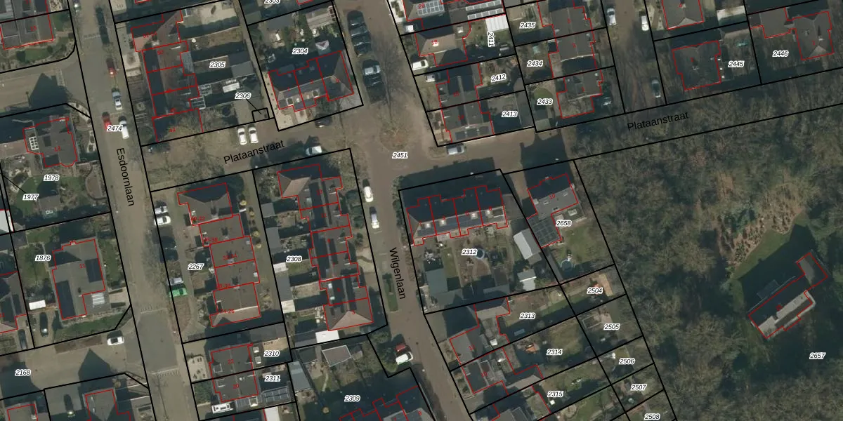 Plataanstraat 2 is gelegen op kadastraal perceel MIL00K2312. Deze kadastrale aanduiding is uniek en wordt gebruikt door het Kadaster om eigendomsrechten en andere zakelijke rechten vast te leggen. Het perceel maakt onderdeel uit van de kadastrale gemeente Mill.