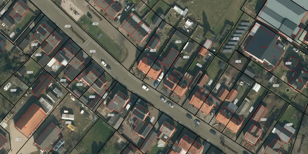 Thomasweg 18 is gelegen op kadastraal perceel MIL00K2786. Deze kadastrale aanduiding is uniek en wordt gebruikt door het Kadaster om eigendomsrechten en andere zakelijke rechten vast te leggen. Het perceel maakt onderdeel uit van de kadastrale gemeente Mill.
