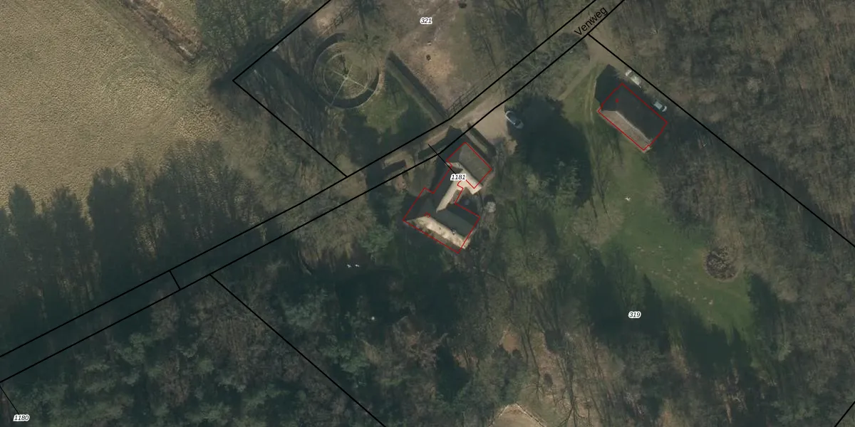 Het perceel waarop Venweg 10 staat heeft een oppervlakte van 1,2 ha. Dit is een zeer groot perceel. De perceeloppervlakte wordt geregistreerd door het Kadaster. Gedetailleerde informatie over de maten van dit perceel kunt u vinden in het rapport Kadastrale kaart met maatvoering van Venweg 10.