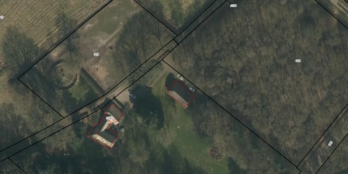 Het perceel waarop Venweg 8 staat heeft een oppervlakte van 1,2 ha. Dit is een zeer groot perceel. De perceeloppervlakte wordt geregistreerd door het Kadaster. Gedetailleerde informatie over de maten van dit perceel kunt u vinden in het rapport Kadastrale kaart met maatvoering van Venweg 8.
