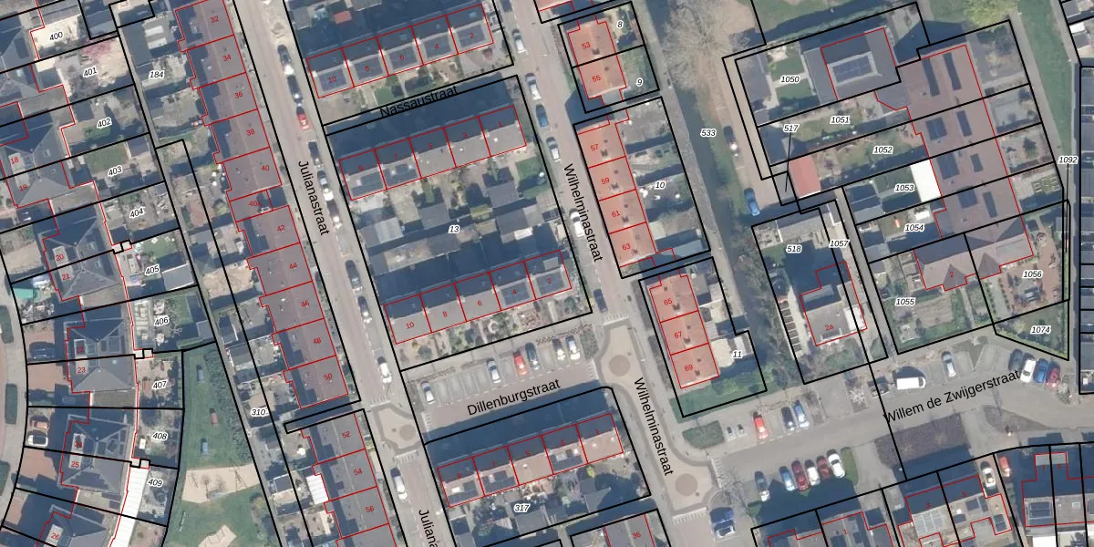 Het perceel waarop Dillenburgstraat 2 staat heeft een oppervlakte van 1654 m². Dit is een zeer groot perceel. De perceeloppervlakte wordt geregistreerd door het Kadaster. Gedetailleerde informatie over de maten van dit perceel kunt u vinden in het rapport Kadastrale kaart met maatvoering van Dillenburgstraat 2.