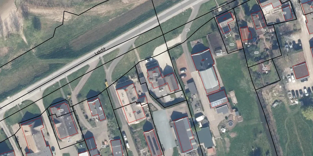 Het perceel waarop Lekdijk 103 staat heeft een oppervlakte van 571 m². Dit is een groot perceel. De perceeloppervlakte wordt geregistreerd door het Kadaster. Gedetailleerde informatie over de maten van dit perceel kunt u vinden in het rapport Kadastrale kaart met maatvoering van Lekdijk 103.