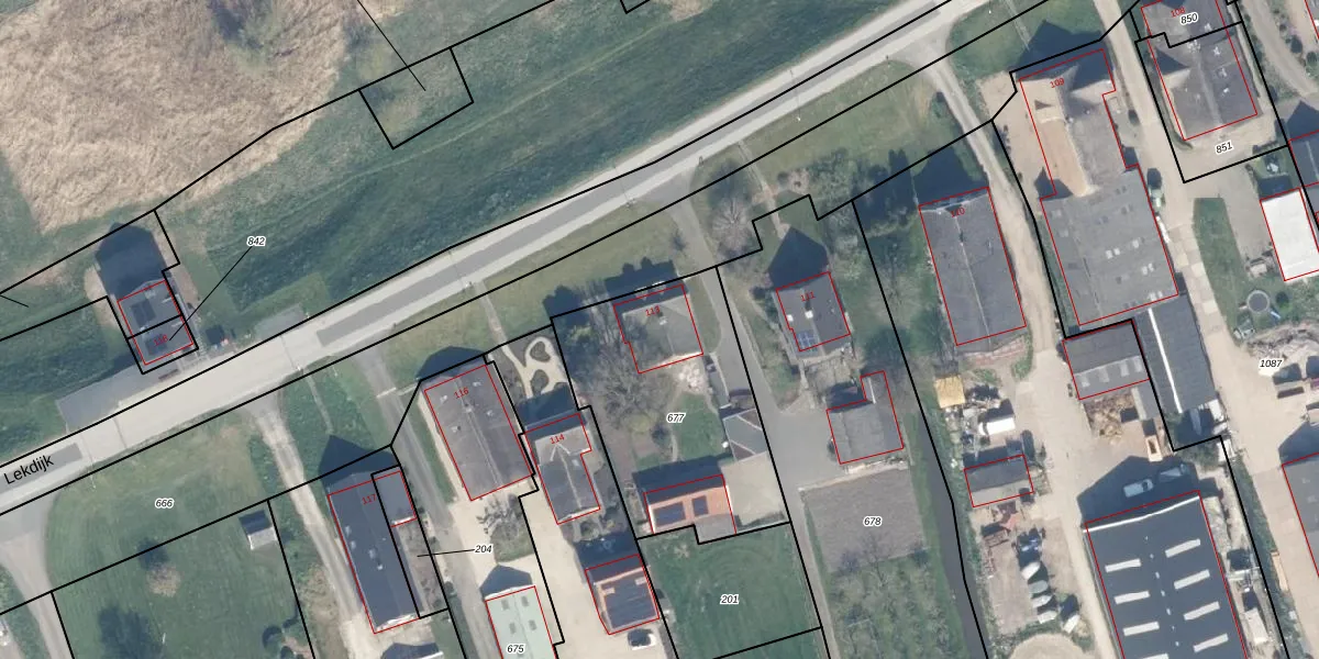 Het perceel waarop Lekdijk 113 staat heeft een oppervlakte van 952 m². Dit is een groot perceel. De perceeloppervlakte wordt geregistreerd door het Kadaster. Gedetailleerde informatie over de maten van dit perceel kunt u vinden in het rapport Kadastrale kaart met maatvoering van Lekdijk 113.