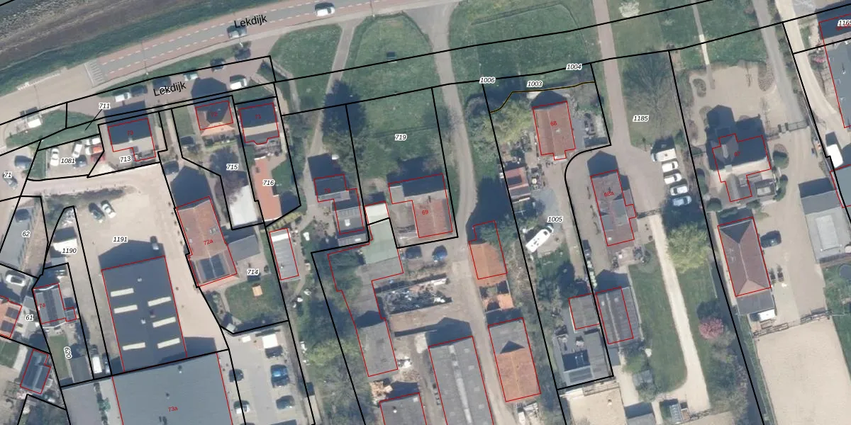 Het perceel waarop Lekdijk 69 staat heeft een oppervlakte van 695 m². Dit is een groot perceel. De perceeloppervlakte wordt geregistreerd door het Kadaster. Gedetailleerde informatie over de maten van dit perceel kunt u vinden in het rapport Kadastrale kaart met maatvoering van Lekdijk 69.