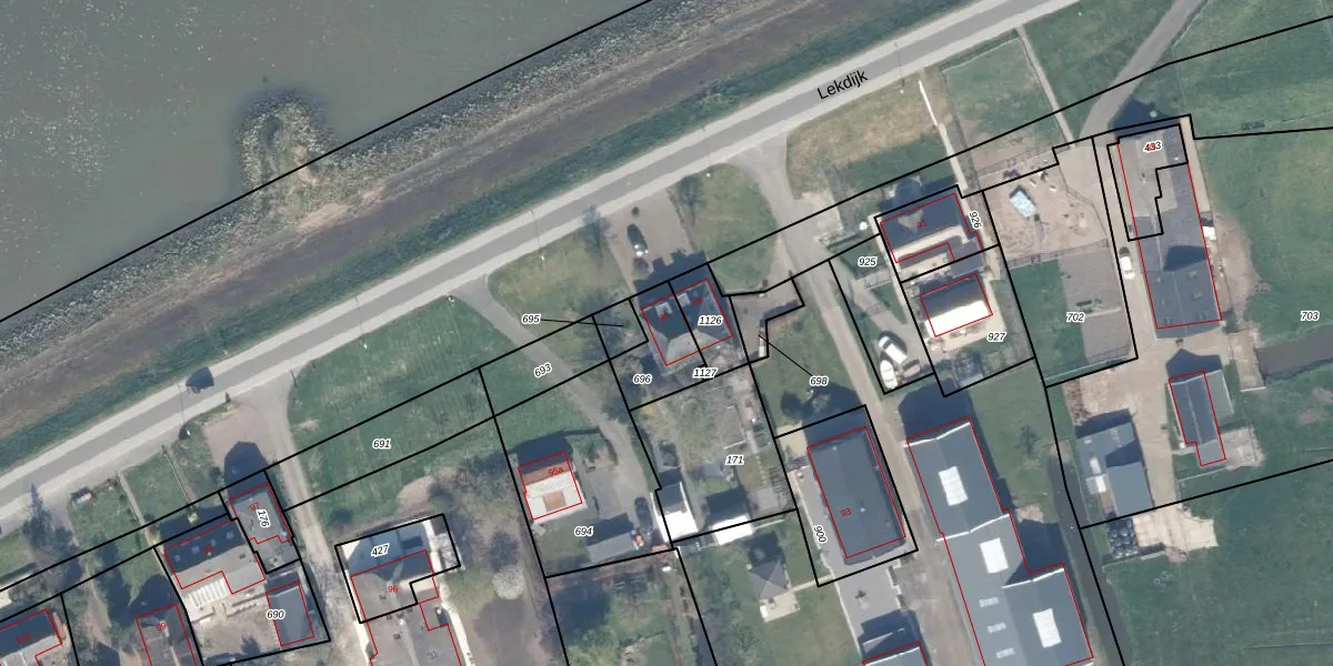 Lekdijk 95 is gelegen op kadastraal perceel LGR00E696. Deze kadastrale aanduiding is uniek en wordt gebruikt door het Kadaster om eigendomsrechten en andere zakelijke rechten vast te leggen. Het perceel maakt onderdeel uit van de kadastrale gemeente Langerak.