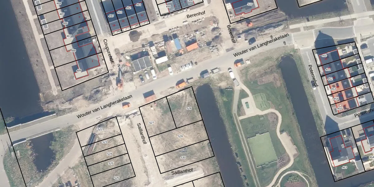 Gebruik de zoekbalk of klik op een perceel voor informatie over de adressen binnen dit perceel.