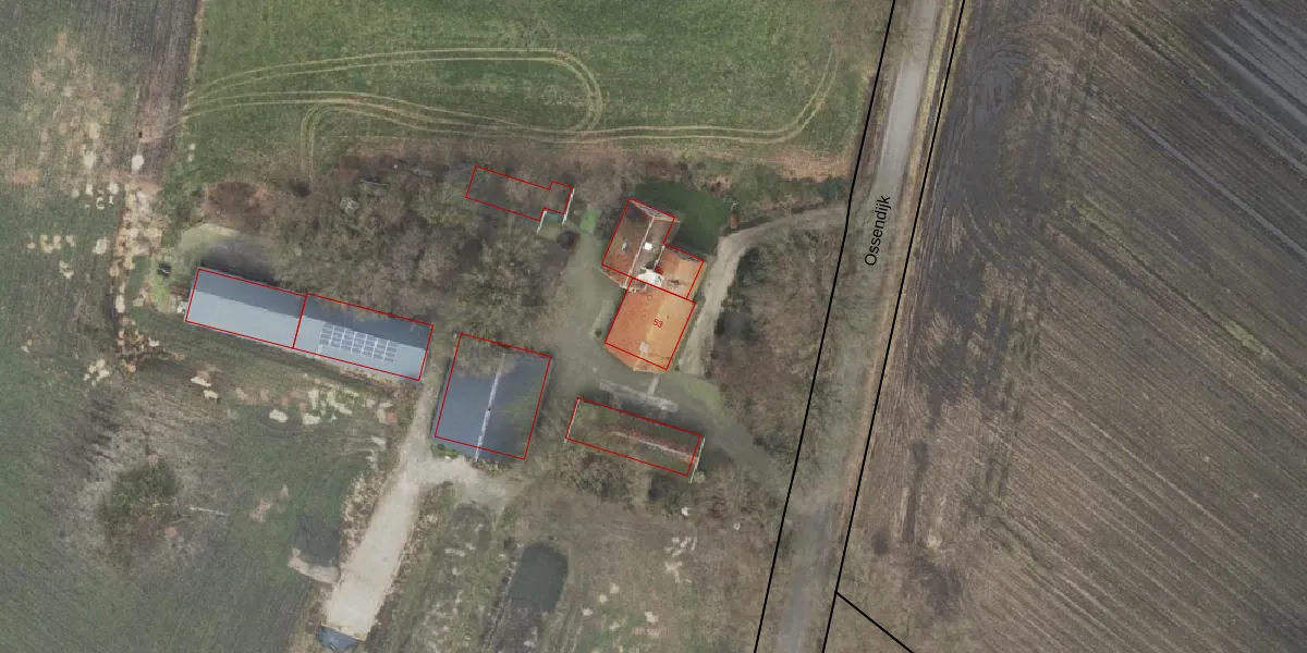 Het perceel waarop Ossendijk 53 staat heeft een oppervlakte van 8,6 ha. Dit is een zeer groot perceel. De perceeloppervlakte wordt geregistreerd door het Kadaster. Gedetailleerde informatie over de maten van dit perceel kunt u vinden in het rapport Kadastrale kaart met maatvoering van Ossendijk 53.
