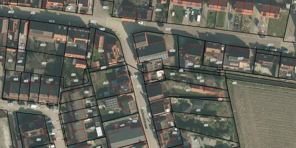 Het perceel waarop Schoolstraat 38 staat heeft een oppervlakte van 91 m². Dit is een klein perceel. De perceeloppervlakte wordt geregistreerd door het Kadaster. Gedetailleerde informatie over de maten van dit perceel kunt u vinden in het rapport Kadastrale kaart met maatvoering van Schoolstraat 38.