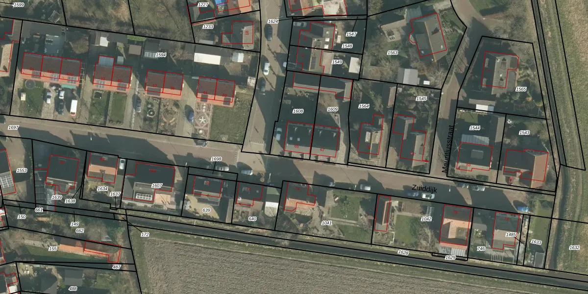 Zuiddijk 65 is gelegen op kadastraal perceel ZVB00H1608. Deze kadastrale aanduiding is uniek en wordt gebruikt door het Kadaster om eigendomsrechten en andere zakelijke rechten vast te leggen. Het perceel maakt onderdeel uit van de kadastrale gemeente Zevenbergen.