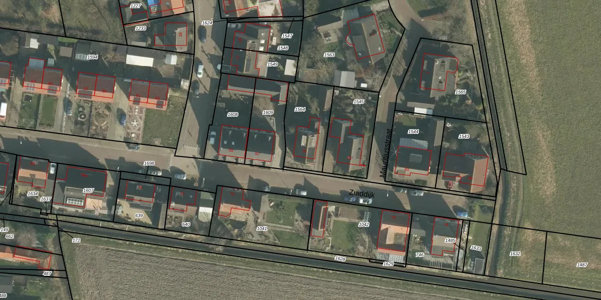 Het perceel waarop Zuiddijk 79 staat heeft een oppervlakte van 419 m². Dit is een groot perceel. De perceeloppervlakte wordt geregistreerd door het Kadaster. Gedetailleerde informatie over de maten van dit perceel kunt u vinden in het rapport Kadastrale kaart met maatvoering van Zuiddijk 79.