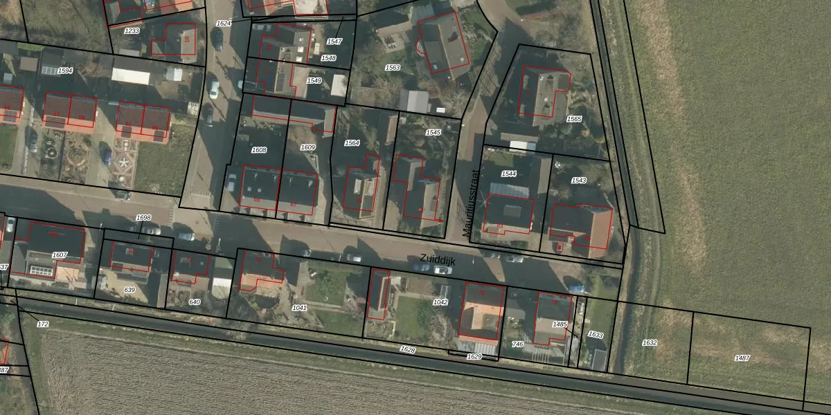 Het perceel waarop Zuiddijk 81 staat heeft een oppervlakte van 436 m². Dit is een groot perceel. De perceeloppervlakte wordt geregistreerd door het Kadaster. Gedetailleerde informatie over de maten van dit perceel kunt u vinden in het rapport Kadastrale kaart met maatvoering van Zuiddijk 81.