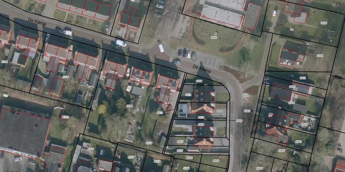 Het perceel waarop De Klamp 11 staat heeft een oppervlakte van 2385 m². Dit is een zeer groot perceel. De perceeloppervlakte wordt geregistreerd door het Kadaster. Gedetailleerde informatie over de maten van dit perceel kunt u vinden in het rapport Kadastrale kaart met maatvoering van De Klamp 11.