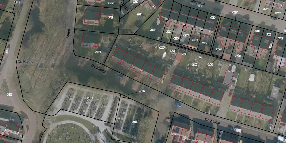 Het perceel waarop De Klamp 38 staat heeft een oppervlakte van 4345 m². Dit is een zeer groot perceel. De perceeloppervlakte wordt geregistreerd door het Kadaster. Gedetailleerde informatie over de maten van dit perceel kunt u vinden in het rapport Kadastrale kaart met maatvoering van De Klamp 38.