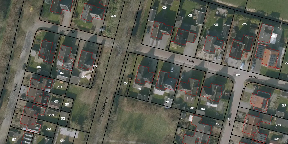 Het perceel waarop Jister 21 staat heeft een oppervlakte van 450 m². Dit is een groot perceel. De perceeloppervlakte wordt geregistreerd door het Kadaster. Gedetailleerde informatie over de maten van dit perceel kunt u vinden in het rapport Kadastrale kaart met maatvoering van Jister 21.