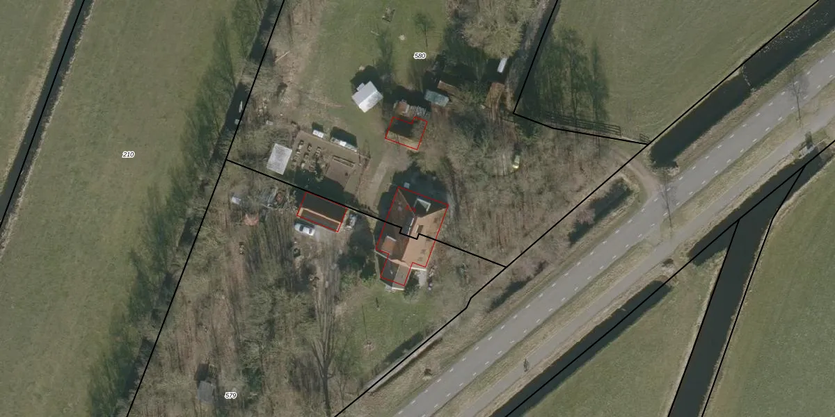 Het perceel waarop het adres ligt is LGZ00-H-580. De afkorting 'LGZ00' staat voor kadastrale gemeente Langezwaag. Het perceel is 7350 m² groot. Dat is kleiner dan de gemiddelde perceeloppervlakte in Langezwaag, dat op 1,3 ha ligt. Het grootste perceel in de kadastrale gemeente is 36,9 ha. Het kleinste perceel heeft een oppervlakte van 2 m². Dit is het enige adres dat aanwezig is op het perceel. In de Basisregistratie Kadaster (BRK) werden de grenzen van het perceel geregistreerd op 06-12-2021.