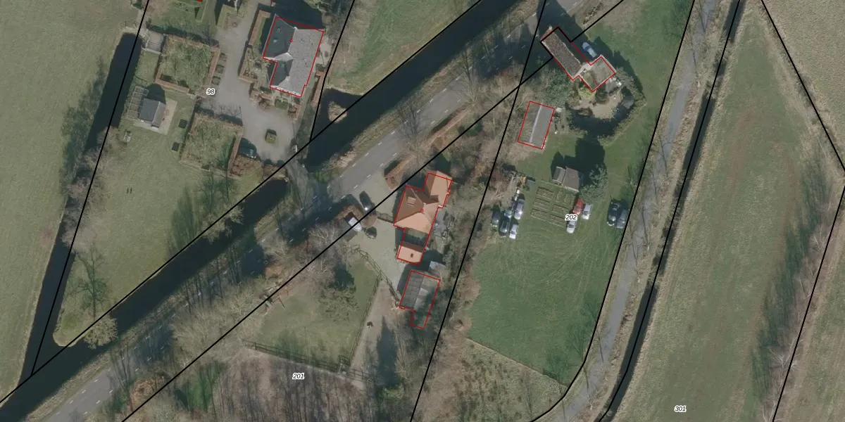 Het perceel waarop het adres ligt is LGZ00-J-201. De afkorting 'LGZ00' staat voor kadastrale gemeente Langezwaag. De gemiddelde perceelgrootte in Langezwaag is 1,3 ha. Dit perceel is kleiner: de perceeloppervlakte bedraagt 3280 m². Het kleinste perceel in de kadastrale gemeente is 2 m² groot. De grootste perceeloppervlakte is 36,9 ha. Op het perceel bevinden zich geen andere adressen. In de Basisregistratie Kadaster (BRK) werden de grenzen van het perceel geregistreerd op 15-01-1998.