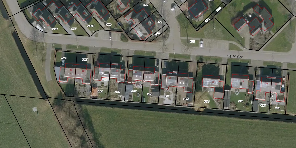 De Molier 21 is gelegen op kadastraal perceel LWR02A5471. Deze kadastrale aanduiding is uniek en wordt gebruikt door het Kadaster om eigendomsrechten en andere zakelijke rechten vast te leggen. Het perceel maakt onderdeel uit van de kadastrale gemeente Langweer.