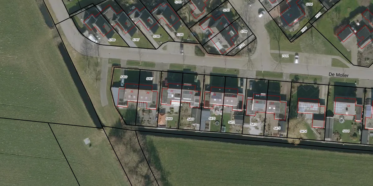 De Molier 25 is gelegen op kadastraal perceel LWR02A5469. Deze kadastrale aanduiding is uniek en wordt gebruikt door het Kadaster om eigendomsrechten en andere zakelijke rechten vast te leggen. Het perceel maakt onderdeel uit van de kadastrale gemeente Langweer.