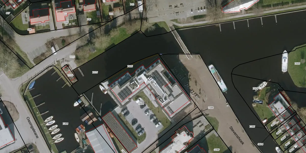 Het perceel waarop Stevenshoek 35 staat heeft een oppervlakte van 2716 m². Dit is een zeer groot perceel. De perceeloppervlakte wordt geregistreerd door het Kadaster. Gedetailleerde informatie over de maten van dit perceel kunt u vinden in het rapport Kadastrale kaart met maatvoering van Stevenshoek 35.
