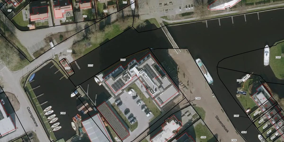 Het perceel waarop Stevenshoek 47 staat heeft een oppervlakte van 2716 m². Dit is een zeer groot perceel. De perceeloppervlakte wordt geregistreerd door het Kadaster. Gedetailleerde informatie over de maten van dit perceel kunt u vinden in het rapport Kadastrale kaart met maatvoering van Stevenshoek 47.