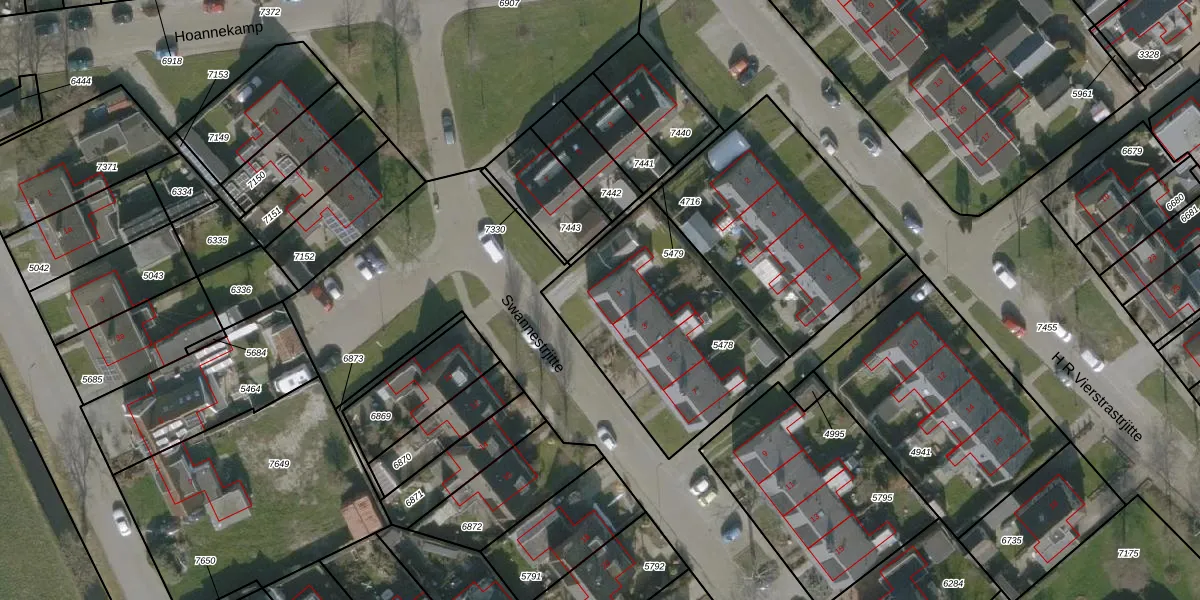 Swannestrjitte 1 is gelegen op kadastraal perceel LWR02A5478. Deze kadastrale aanduiding is uniek en wordt gebruikt door het Kadaster om eigendomsrechten en andere zakelijke rechten vast te leggen. Het perceel maakt onderdeel uit van de kadastrale gemeente Langweer.
