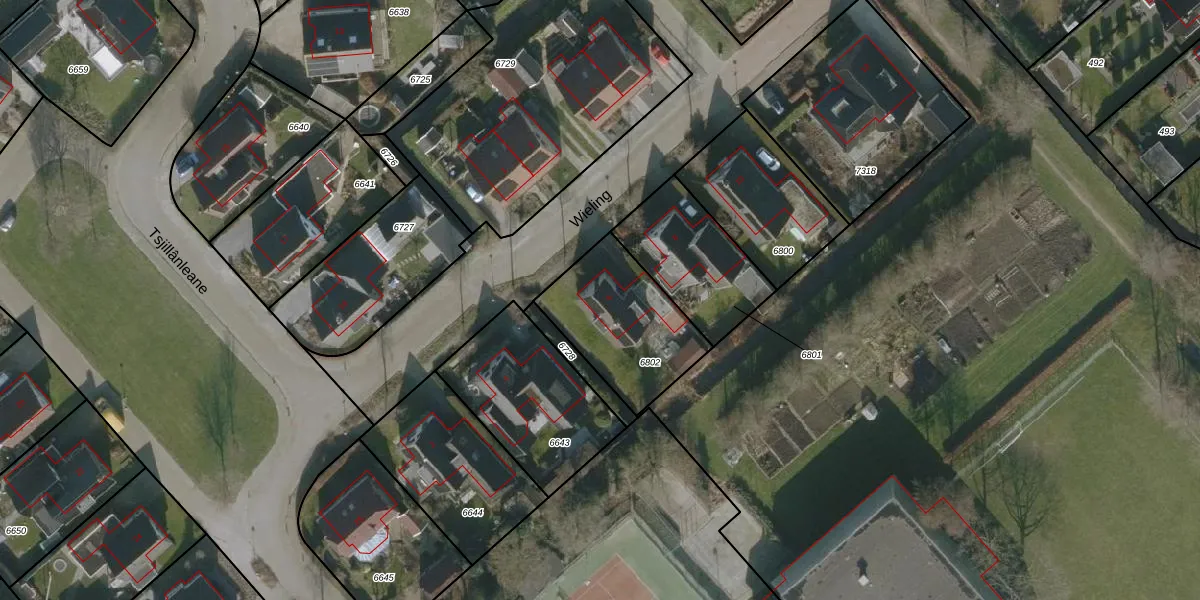 Het perceel waarop Wieling 6 staat heeft een oppervlakte van 445 m². Dit is een groot perceel. De perceeloppervlakte wordt geregistreerd door het Kadaster. Gedetailleerde informatie over de maten van dit perceel kunt u vinden in het rapport Kadastrale kaart met maatvoering van Wieling 6.