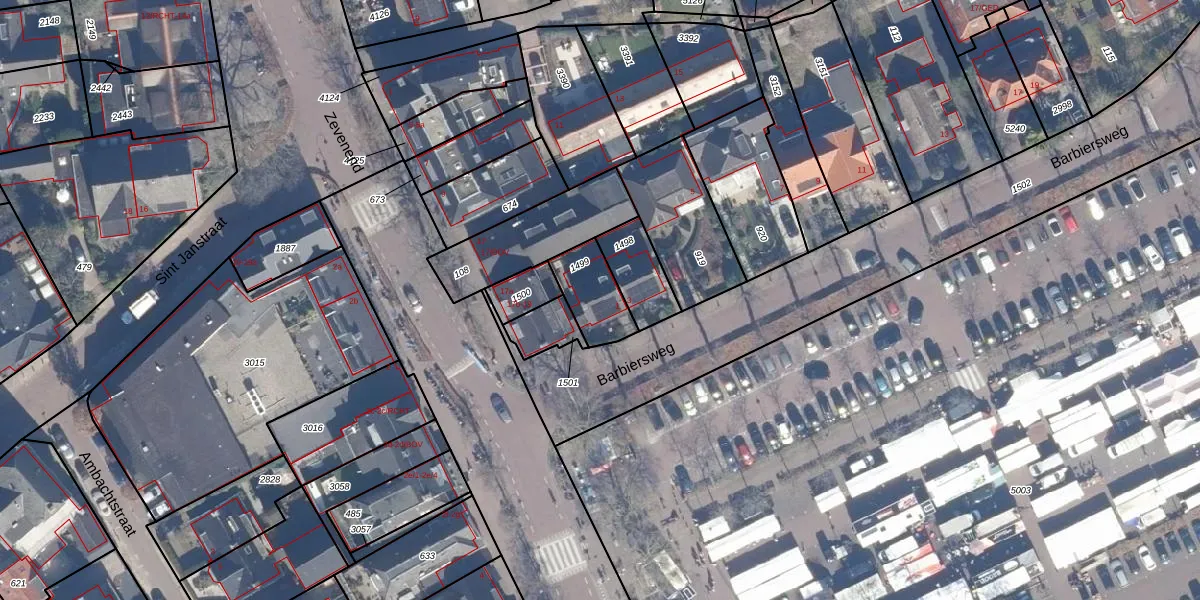 Gebruik de zoekbalk of klik op een perceel voor informatie over de adressen binnen dit perceel.