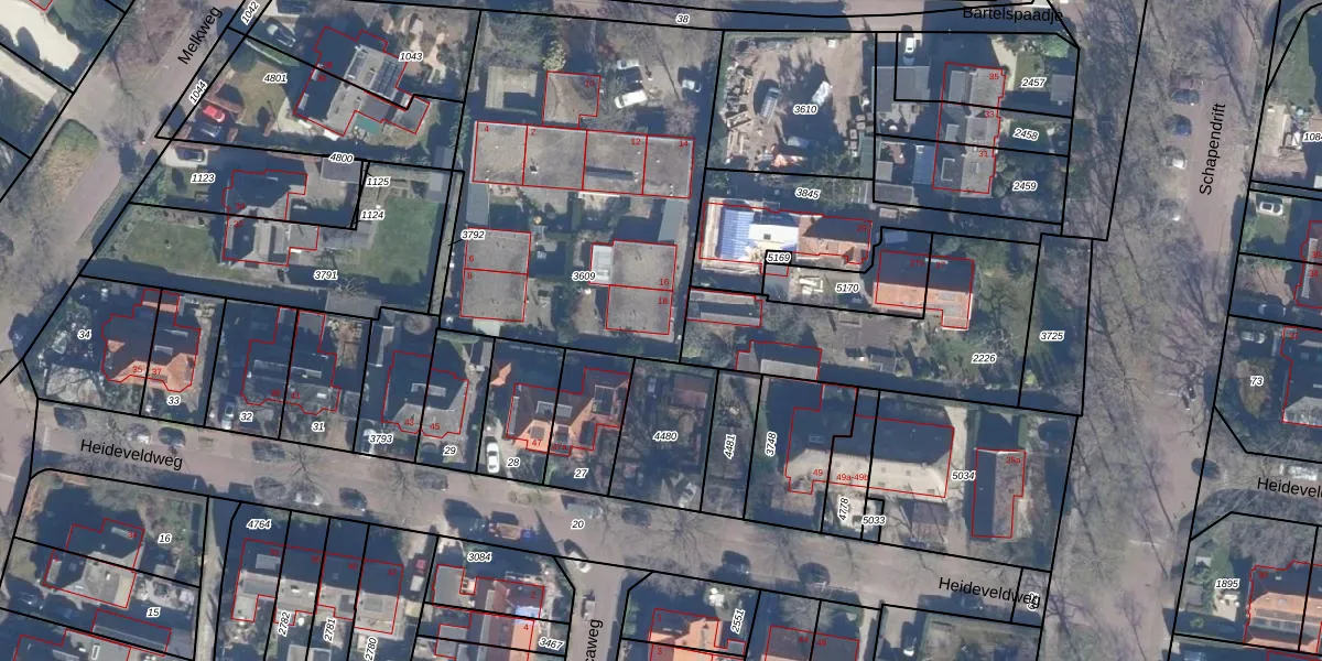 Het perceel waarop Bartelspaadje 18 staat heeft een oppervlakte van 1850 m². Dit is een zeer groot perceel. De perceeloppervlakte wordt geregistreerd door het Kadaster. Gedetailleerde informatie over de maten van dit perceel kunt u vinden in het rapport Kadastrale kaart met maatvoering van Bartelspaadje 18.