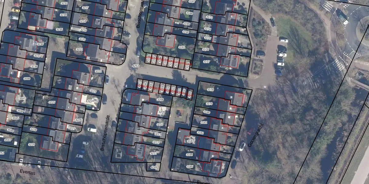 Bisschopswaarde 12-G09 is gelegen op kadastraal perceel LRN01G3200. Deze kadastrale aanduiding is uniek en wordt gebruikt door het Kadaster om eigendomsrechten en andere zakelijke rechten vast te leggen. Het perceel maakt onderdeel uit van de kadastrale gemeente Laren Noord-Holland.