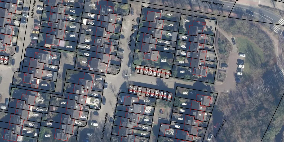 Bisschopswaarde 14-G02 is gelegen op kadastraal perceel LRN01G3197. Deze kadastrale aanduiding is uniek en wordt gebruikt door het Kadaster om eigendomsrechten en andere zakelijke rechten vast te leggen. Het perceel maakt onderdeel uit van de kadastrale gemeente Laren Noord-Holland.